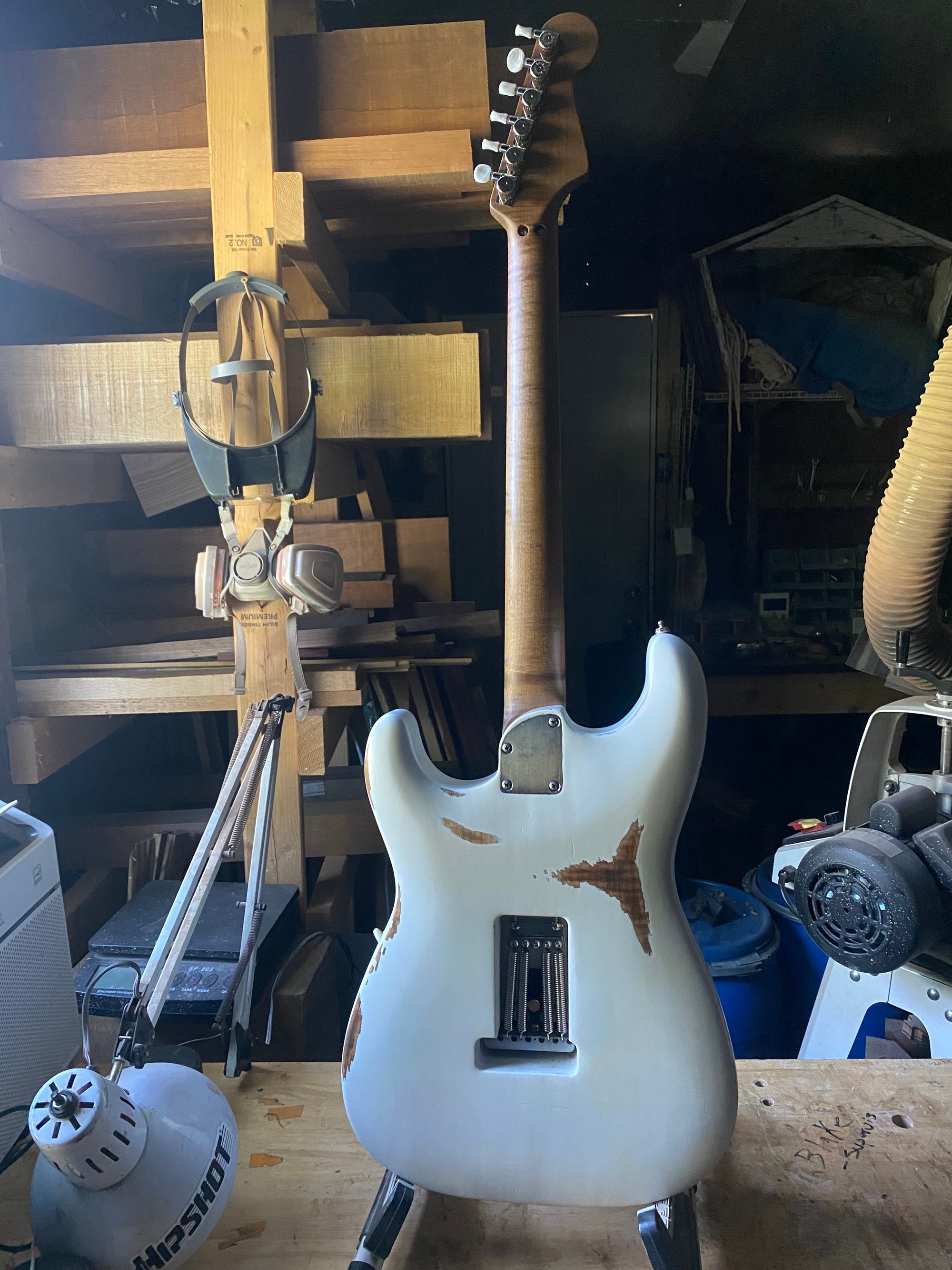 Alder core/back with figured maple top and optional maple back. Maple/Rosewood reverse headstock neck. Optional scalloped fretboard. 25.5” scale. 10-12” compound radius.